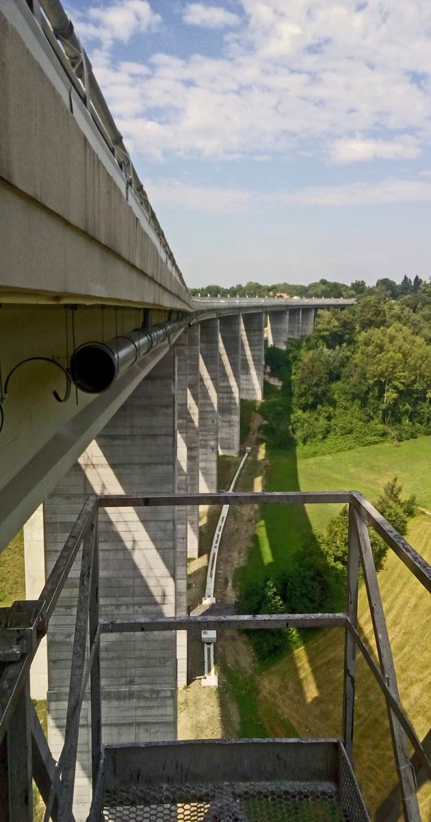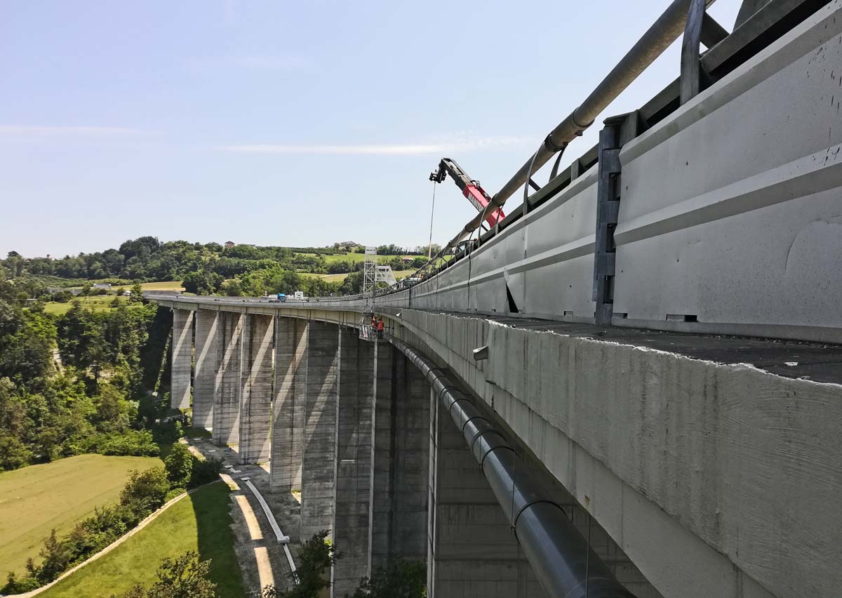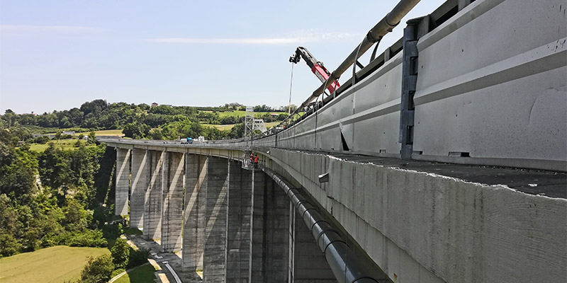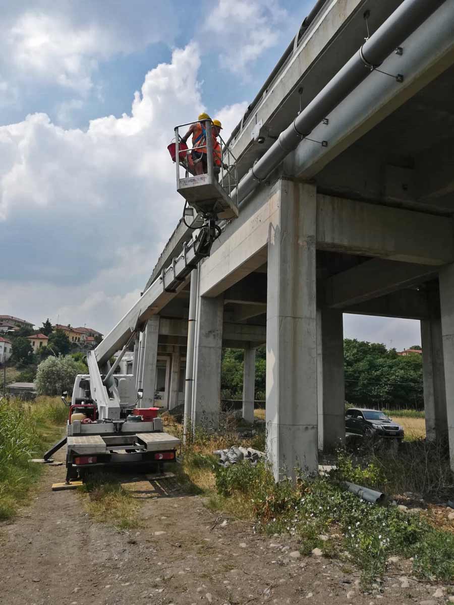 Interventi di regimazione idraulica dei viadotti. Stralcio I – Reg. Piemonte. Realizzazione sistemi di smaltimento delle acque di piattaforma (caditoie, bocche di lupo, tubazioni), adeguamento dei New Jersey esistenti e lavori di ripristino del calcestruzzo ammalorato delle pile, spalle, travi su un tot. di 18 viadotti autostradali.