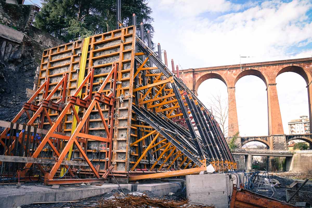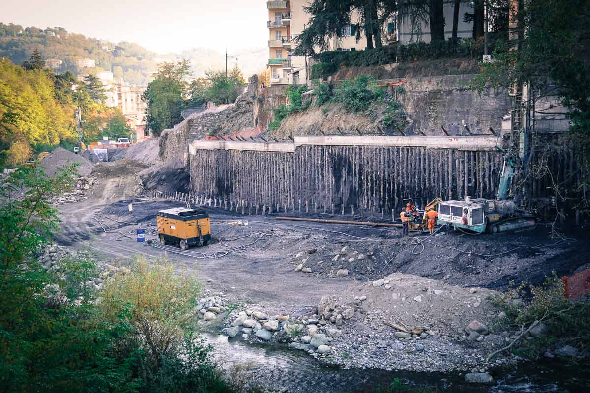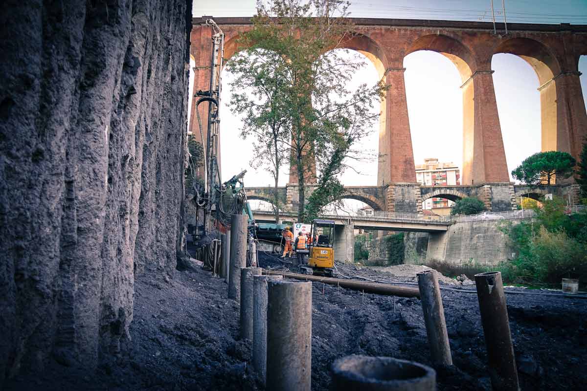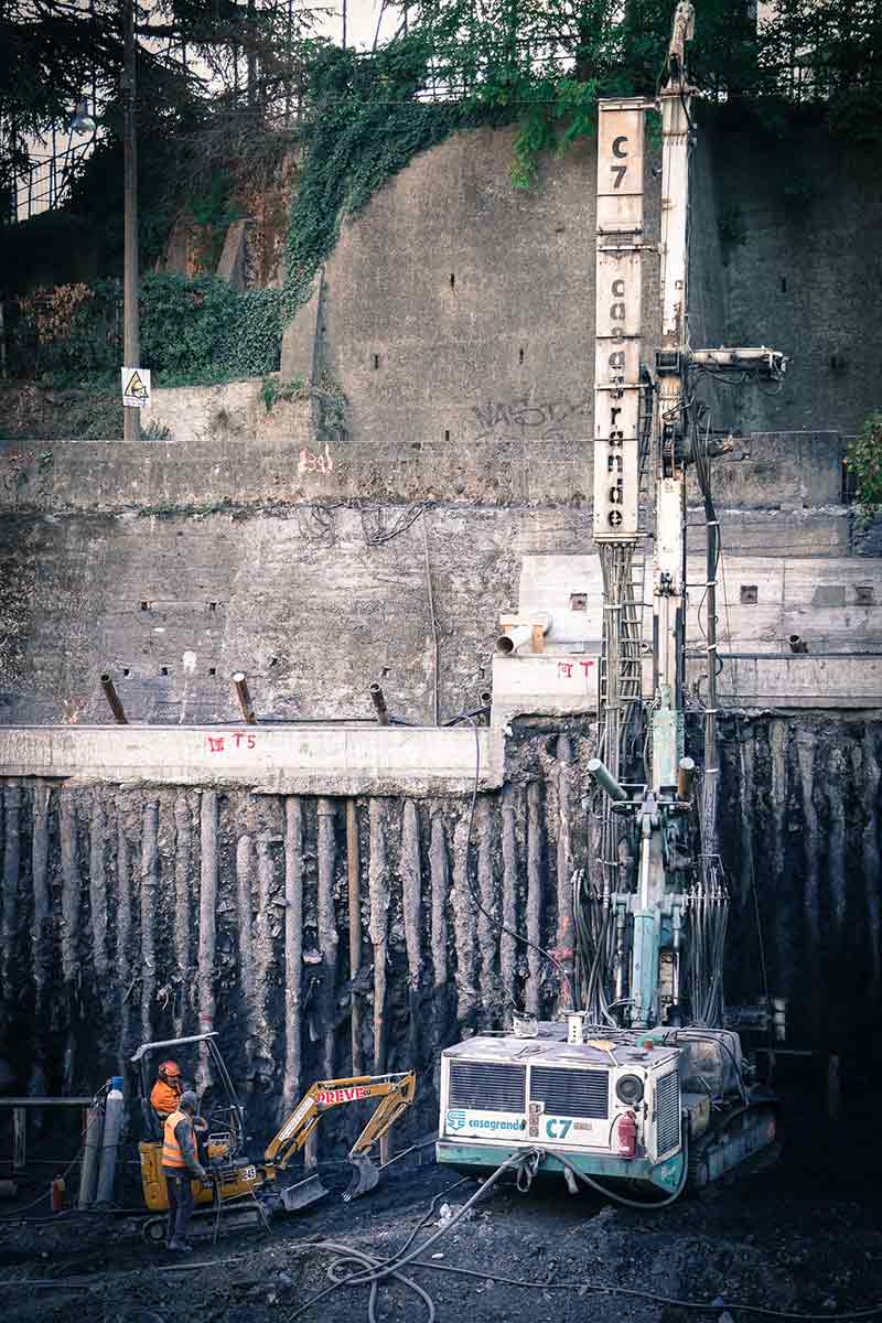 ADEGUAMENTO NODO DI PONTEDECIMO WBS NV07. Realizzazione di una strada cat. F su muro continuo fondato su micropali: sono state eseguite 3 paratie di micropali per un totale di 7.700 metri lineari.