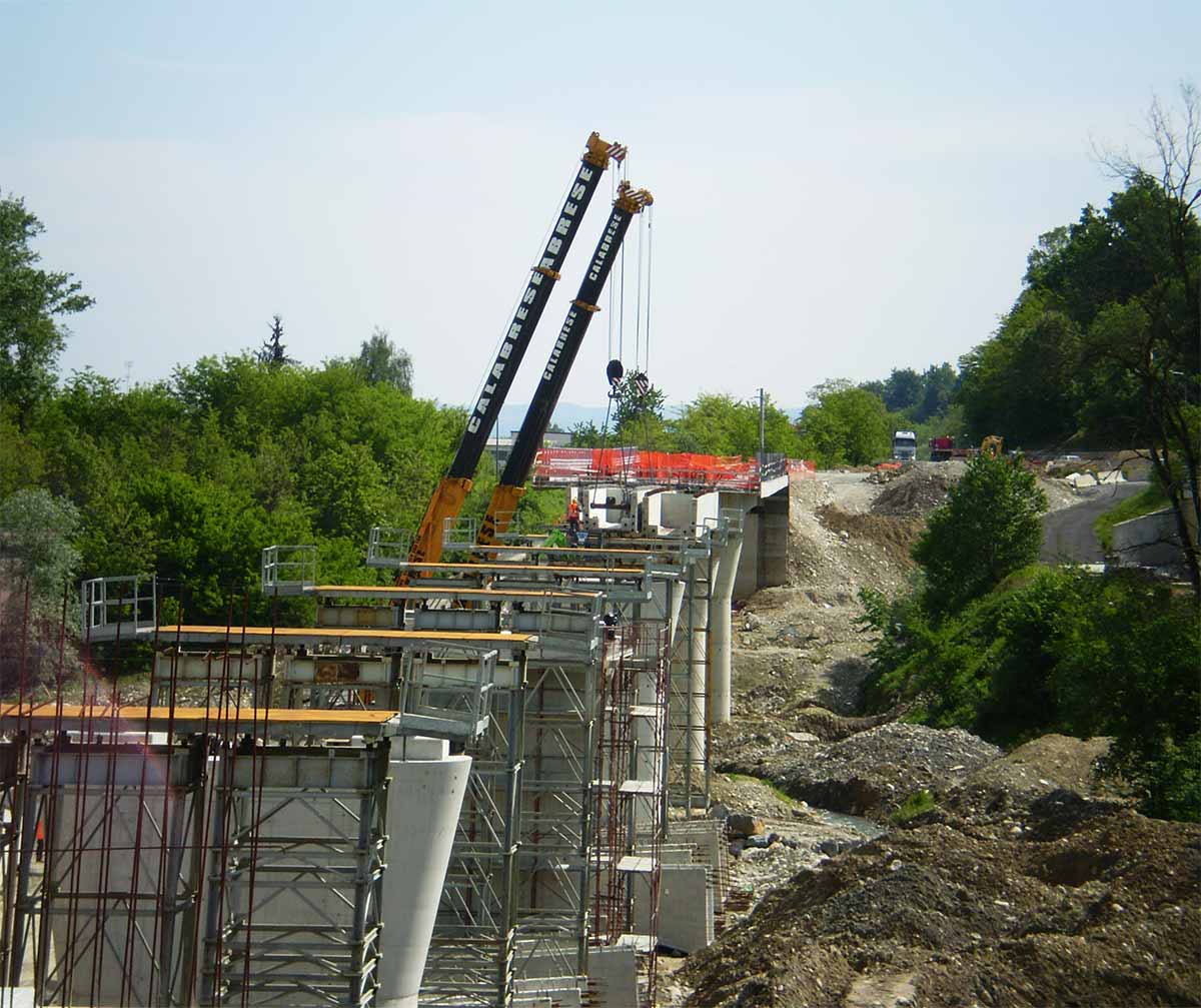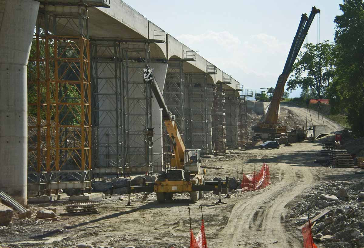 VARIANTE AGLI ABITATI DI BEINETTE E PIANFEI. Realizzazione nuovo tracciato stradale tipo C1 di circa 6 km comprese 3 rotonde, due sottopassi ferroviari scatolari in c.a. e tre ponti con travate in acciaio CORTEN ed impalcato c.a. collaborante.